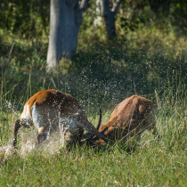 Der spät beginnenden Regenzeit geschuldet, hatten wir diesmal ordentlich hohes Gras und es war unheimlich grün, daher ganz einfach 'green with muddy patches'