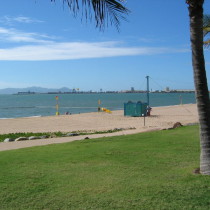 Da der Bus erst in einer halben Stunde am Campground vorbeikommt, beschließen wir, das kurze Stück von ca. 4 Kilometern, schnell zu laufen. Leider zieht sich das Stück doch ganz schön, obwohl der Weg, vorbei an “The Strand“, der Beachpromenade von Townsville, ziemlich eindrucksvoll ist. So einen schönen Park haben wir vorher noch nicht gesehen. Kein Wunder, dass die Stadt dafür eine Auszeichnung erhielt.