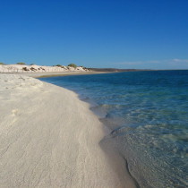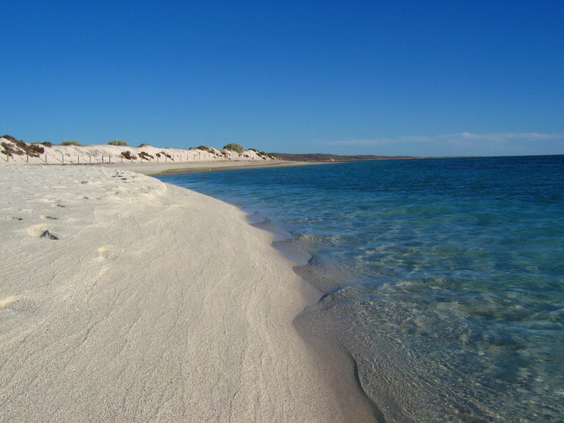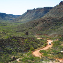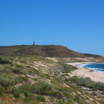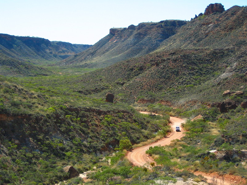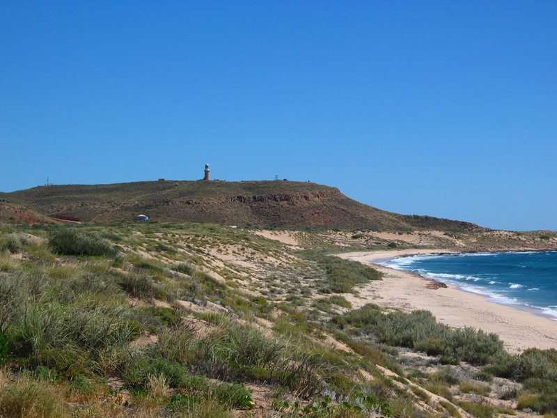 6.30h ist unsere Zeit. Nach dem Frühstück sind wir gegen 8.00h auf der Piste. Es geht nach Exmouth. Bereits um 9.30h sind wir auf der Charles Knife Road mit herrlichen Blicken in die gleichnamige Schlucht, die sich auf der Rückseite des Cape Ranges NP befindet. Wir fahren bis zum Thomas Carter Lookout (Schotterpiste vom feinsten), entscheiden uns aber gegen die 8 km lange Wanderung. Die anschließende Fahrt in den Shothole Canyon ist viel besser. Ein herrlicher Canyon, nur schade, dass man hier nicht wandern kann – das wäre super! Wir fahren weiter nach Exmouth, stehen dort mal wieder vor verschlossenen Türen des CALM Office (ach ja, heute ist Samstag), besuchen aber dann das hiesige Info Center, um uns mit den nötigen Infos einzudecken. Nach einem kleinen Einkaufsstop fahren wir zuerst zur Bundegi Bootsanlegestelle (von hier legen auch Walhai Touren ab), werfen einen Blick aufs Meer und fahren dann, vorbei am Leuchtturm, zum Cape Range NP. Kurz vor dem Park Eingang biegen wir an der ersten Düne ab. Wow, die Düne reicht bis ins Meer, weißer Sand so weit man gucken kann und im direkten Kontrast das smaragdgrüne Wasser – ist das schön!