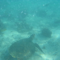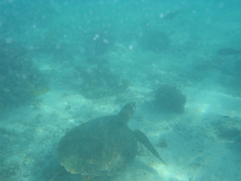 Bei der Einfahrt in den NP bekommen wir direkt eine Campsite zugewiesen, die wir innerhalb der nächsten Stunde aufsuchen müssen, um die Reservierung zu bestätigen. Das machen wir, nachdem wir das Milyering Visitor Center besucht haben und uns im Souvi Shop nebenan Flossen für den nächsten Tag geliehen haben (8,- AU$, finden wir O.K.). Die Campsite ist auf Anhieb nicht der Hit und auch ohne Schatten, aber was soll’s. Wir fahren erst mal zur Turqoise Bay. Hier reicht das Ningaloo Reef mal wieder bis an den Strand – der ideale Schnorchelspot, “The Drift“ genannt befindet sich hier und so warten wir gar nicht lange: ab ins Wasser. Auch hier ist das Wasser um diese Zeit sehr nährstoffreich und somit etwas trüb, aber voller bunter und zum Teil großer Fische. Ja sogar ein Riffhai ist direkt mal wieder dabei (nichts für schwache Nerven). Eine Schildkröte trödelt auch hier durchs Wasser, es ist bezaubernd. Wir Schnorcheln fast eine Stunde, bevor wir etwas unterkühlt zum Strand zurück schwimmen.