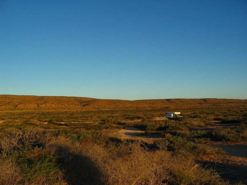 Gerade zum Sonnenuntergang (18.00h) schaffen wir es auf unserer Campsite zu sein und müssen feststellen, dass die im Dunkeln gar nicht so schlecht ist. Bei Vollmond gibt’s Encheladas und wir sitzen noch bis 21.00h draußen. Die Nachbarn lachen sich derweil über Paul Panzer kaputt (das haben die aber bereits in Monkey Mia gemacht) und das Känguru, das bereits in der Dämmerung den Platz unsicher gemacht hat, ist in der Nacht zurück und erforscht (scheppernd) die Küchenutensilien der Nachbarn J