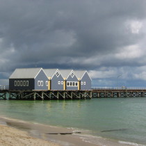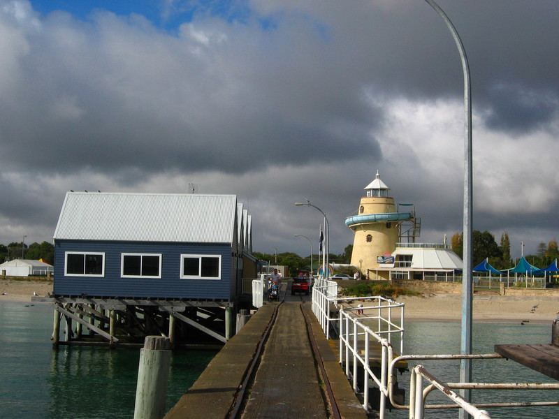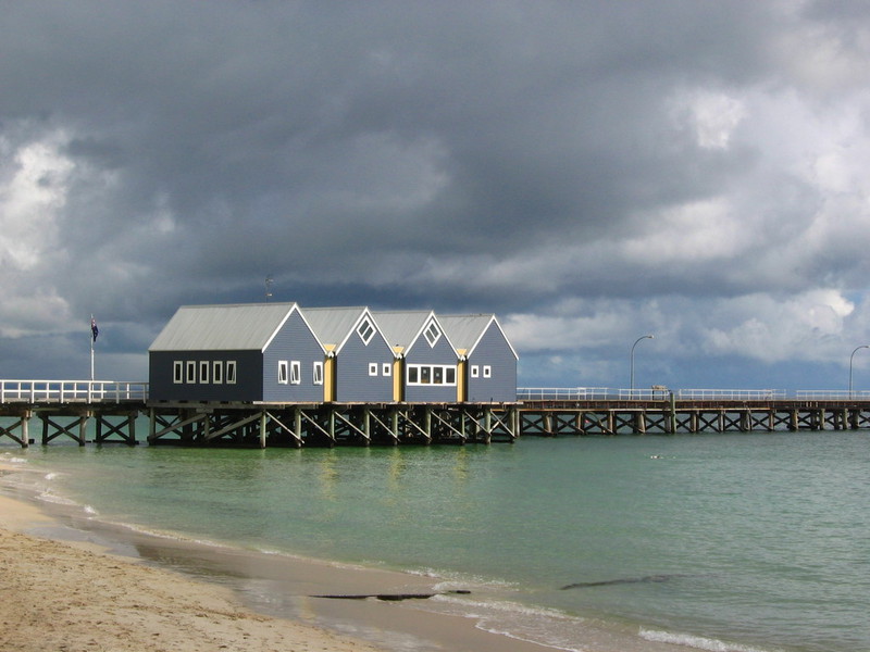 Wir kommen jetzt in den Großraum von Perth zurück, was man an Dunsborough direkt merken kann. Die Stadt ist ganz schön im Auf-/Neubau. Soweit das Auge reicht wird hier gewühlt. Getoppt wird das Ganze aber von Busselton. Wow, was hier für Häuser stehen… könnte einem gefallen. Luxusbauten und Einkaufszentren lassen die Nähe zu Perth (ca. 2 1/2 Std.) erkennen. Die eigentliche Attraktion ist die Jetty von Busselton. Ein ca. 2 km langer Pier raus aufs Meer, dessen Ende man bei dem heutigen, trüben Wetter kaum erkennen kann. Wir wagen dennoch den Fußmarsch dorthin… Auf halber Strecke gibt’s so was wie “Angeln für Kinder“ (jaja, der Nachwuchs muss gefördert werden) und in der Bay selber sind viele Schwimmer zu sehen. Vielleicht absolvieren die ja ein letztes Training, denn Morgen findet hier der “Busselton Half Iron Man“ statt.
