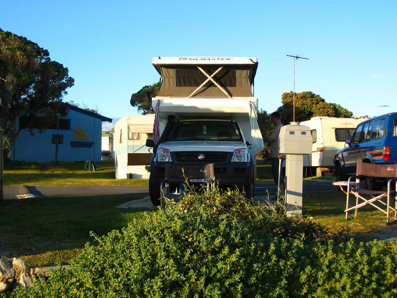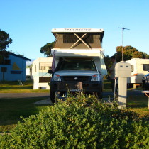 Wir schaffen es bis Quinns Rocks und gehen dort auf den Caravan Park. Wahrscheinlich sind wir einer der wenigen Durchreisenden hier, denn der Platz ist voll mit Dauercampern. An Facilities mangelt es ein wenig, dafür werden wir mit einem Platz in der 1. Reihe entschädigt. Das nutzen wir jetzt auch erst Mal und gehen an den Strand um die letzten Sonnenstrahlen zu nutzen. Denn was wir noch nicht erwähnt haben: hinter Busselton kam die Sonne raus. Lediglich in Bunbury wurden wir noch mal von einem heftigen Gewitter heimgesucht. Nach dem verdienten Kaffee in der Sonne, ziehen nach Sonnenuntergang aber wieder Wolken auf, was bedeutet, dass es um 18.30h wieder mal anfängt zu regnen und ohne Camper-Kitchen sind wir, was das Kochen angeht, etwas aufgeschmissen. Da wird’s dann heute wohl nur Sandwiches geben. Im Dunkeln drehen wir später noch mal ne Runde über den Platz bevor wir gegen 22.00h ins Bett gehen. Die Wellen klatschen ganz schön laut auf den Strand…