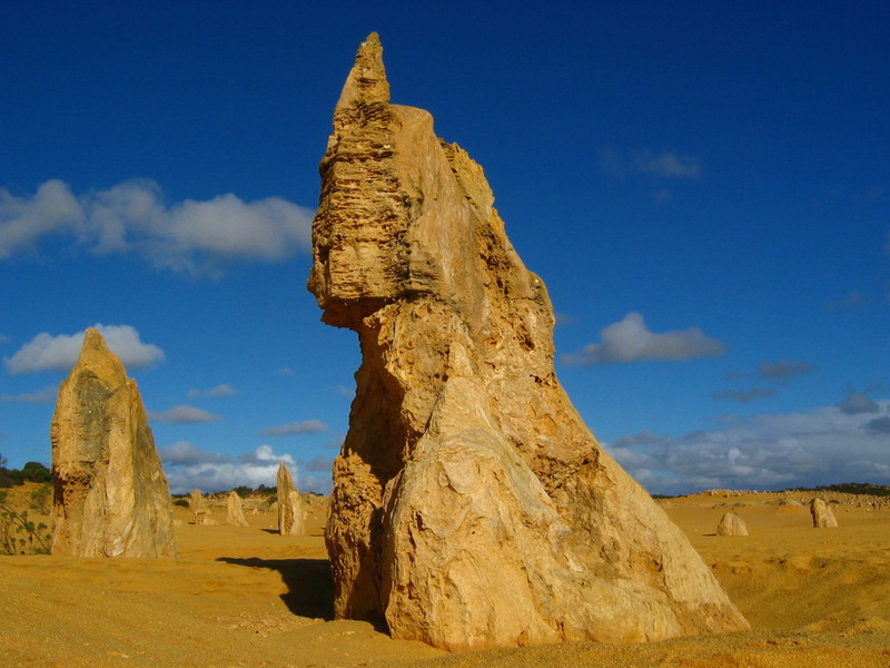 Hui, war das ne Nacht ! Gestürmt und geregnet hat’s und gegen 3.00h war Tö-Pause angesagt (wir konnten eh nicht schlafen). Als aber um 6.00h der Wecker klingelt, hängen wir noch eine halbe Stunde dran. Frühstücksmüsli gibt’s heute im Windschatten des Campers und gegen 8.00h sind wir auch schon unterwegs. Bis zum Yanchep National Park brauchen wir nur eine gute halbe Stunde. Eintritt brauchen wir nicht zu zahlen, da wir ja den Holiday Pass haben. Die Anlage ist mehr wie ein Freizeitpark gestaltet: See, Tea-House, botanischer Garten, Koala-Gehege und super viele Picknick und BBQ Facilities. Die im Park befindlichen Caves sind leider nur mit Führung zu sehen und da wir “unsere“ Cave ja bereits besichtigt haben, sparen wir uns eine Tour und fahren stattdessen weiter Richtung Cervantes. Bei Two Rocks fahren wir noch kurz an den Strand und den Rest der Strecke in einem durch. So sind wir bereits um 13.00h in Cervantes, checken auf dem Campground ein und fahren erst mal zum Thirsty Point. Von hier hat man einen netten Blick über die Küste. Weiter geht’s über die Hansen Bay Road zum Lake Thetis.