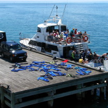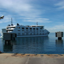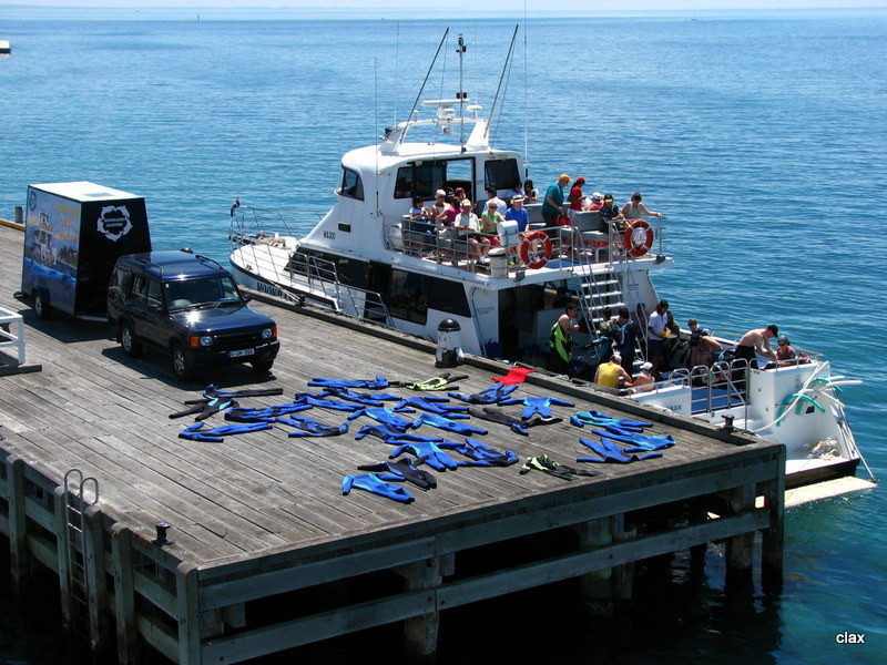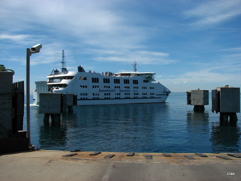 Wir verlassen nun endgültig Phillip Island und fahren auf die Mornington Peninsula, d.h. nach Sorrento, um von dort mit der Fähre nach Queenscliff zu kommen, so sparen wir uns die Fahrt durch den Großraum von Melbourne. Wir brauchen ca. 2 Stunden und stehen um 12.30h in der Warteschlange. Die Fähre aus Queenscliff kommt um 12.45h, wird dann entladen, um wenig später mit uns an Bord die Fahrt zurück nach Queenscliff aufzunehmen. Kurz vor Ende der Fahrt bekommen wir sogar noch Robben und Delphine zu sehen, die ein wenig die Fähre begleiten (im Preis inkl.) Auch Segler sind in der Bucht zu sehen.