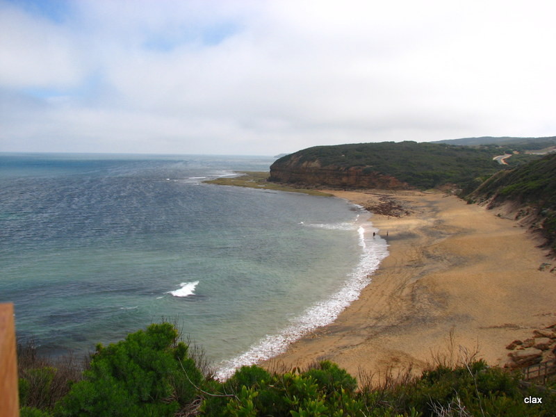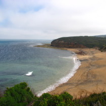Dort angekommen, besuchen wir das örtliche Visitor-Center und decken uns mit noch fehlenden Karten ein. Torquay selber hat für uns nicht viel zu bieten, es gibt ein großes Shopping Center, in dem alle namhaften Surfausrüster vertreten sind (RipCurl, Quicksilver, u.a.). Eine richtige Promenade gibt’s hier leider nicht, oder sagen wir, nicht so wie wir gedacht haben. So ziehen wir uns bei dem großen “M“ ein Kaffee und fahren raus zum Bells Beach. Es ist ein wenig bedeckt, liegt wahrscheinlich an der kalten Luft, die vom Meer kommt (Thermik eben) und Wellen sind überhaupt nicht vorhanden, also auch keine Surfer (und schon gar nicht Patrik Swayze) Wir machen trotzdem ein paar Bilder, bevor wir weiter fahren.