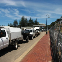 Auf der Weiterfahrt nach San Remo fahren wir noch am Grand Prix Circuit von Cowes vorbei (machen aber nur ein paar Bilder aus der Ferne) und schauen dann noch an einem Surfbeach vorbei. Ganz schön was los an einem Samstag-Vormittag und wer glaubt, dass Surfer nur junge Burschen sind, der irrt. Man glaubt gar nicht, wie viele Silberlocken hier ihr Board zum Strand schleppen – ist halt ein Volkssport.