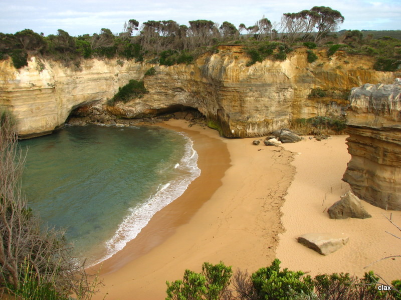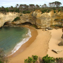 Wir fahren weiter bis zum nächsten Lookout, Loch Ard Gorge, hier ist 1878 die Loch Ard gesunken, tragischer Weise haben von den 54 Leuten an Bord nur 2 überlebt. Für die anderen ist hier ein Friedhof, bzw. eine Gedenkstätte errichtet worden. Der Küstenabschnitt der jetzt kommt, gefällt uns besser, als die 12 Apostel. Die Gesteinformationen sind die gleichen, aber bei weitem nicht so stark frequentiert. Die ganzen Küsteneinschnitte in diesem Teil der Steilküste ist schon beeindruckend. Wir sehen uns im weiteren Verlauf die London Bridge (bzw. was davon übrig ist), “The Grotto“, ein riesiges Blowhole und noch viel mehr an. Da wir uns zwischendurch im Info-Center von Port Campbell die letzten Tipps geholt haben, fahren wir gegen 12.30h in Richtung Peterborough, bzw. dahinter zur Childers Cove, einer nicht wirklich frequentierten Ecke dieses Küstenabschnittes.